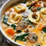 ONE-POT Creamy Sausage Tortellini Soup with Spinach and Sweet Potatoes is a delightful dish that embodies comfort food at its best. Imagine a warm bowl filled with creamy broth, tender cheese tortellini, savory sausage, and vibrant spinach, all accented by the sweetness of roasted sweet potatoes. Each spoonful offers a perfect balance of flavors and textures, creating a culinary hug that’s hard to resist. This recipe is not only delicious but also incredibly easy to make, making it perfect for weeknight dinners or cozy gatherings.