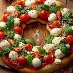 Wreath Pizza is not only a culinary feast; it’s a visual delight. Serve it as a centerpiece at holiday gatherings, family reunions, or cozy movie nights. Pair it with a fresh arugula salad or a light garlic dip to enhance the experience. The festive shape makes it a memorable addition to Christmas parties and New Year’s celebrations. When plated, the bright colors and inviting aroma beckon everyone to gather around the table.